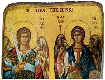 Wooden Greek Christian Orthodox Wood Icon of Archangel Michael and Gabriel / A0