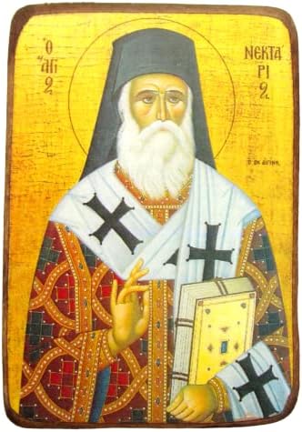 Wooden Greek Orthodox Icon of Saint Nectarios of Aegina
