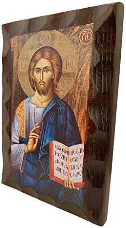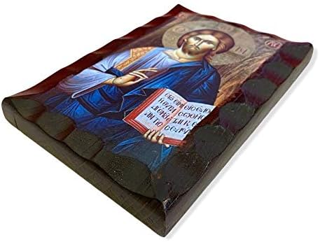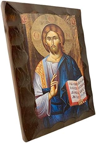 Wooden Greek Orthodox icon Jesus Christ, Length:17CM or 6.7 IN Width:12CM or 4.7 IN.The images are created in the laboratory are copies of Byzantine icons in aged style in colors and wood. In the final step of generating the image, is coated with a special varnish and beeswax for durability, and aromatic oil (myrrh) . All the icons are unique and original, in high quality made by hand. All images are guaranteed for life while at the rear there is a certificate