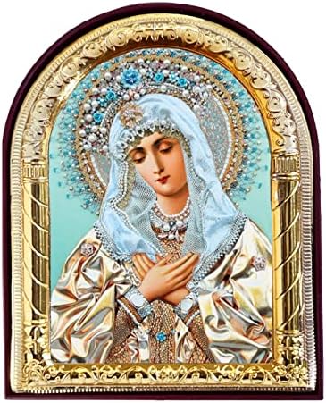 Virgin Mary Madonna Extreme Humility Catholic Orthodox Icon Christian, Religious Gift, Arched Icon With Stand and Wall Hanging 4 1/16 Inch