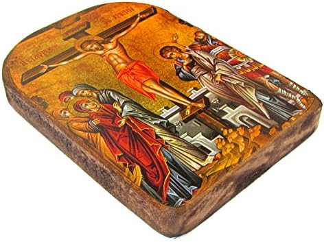 Wooden Greek Christian Orthodox Wood Icon of the Crucifixion / MP2