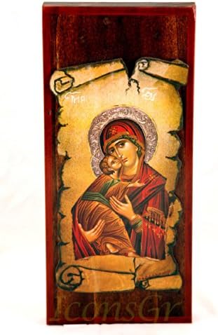 Wooden Greek Orthodox Icon of Jesus Christ & Virgin Mary WIDTH: 16 CM OR 6.29 IN LENGTH:9 CM OR 3.5 IN Our icons are made of the highest quality silkscreen on specially treated wood with advanced aging techniques and other quality materials that ensure the waterproofing and protection from solar radiation. All the icons are unique and original, in high quality made by hand after your order.