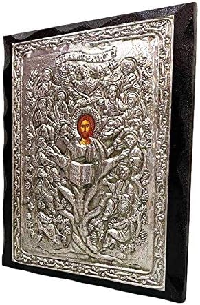 Handmade Greek Christian Orthodox Wood-Metallic icon of The Vine -Jesus Christ With Twelve Apostles (24 X 19cm or 9.4 X 7.5 In) Solid Wood