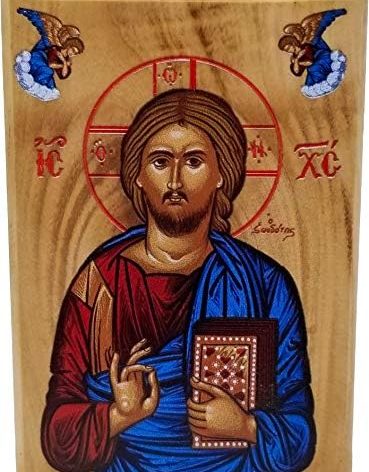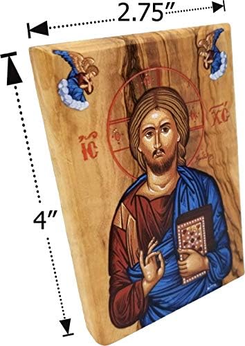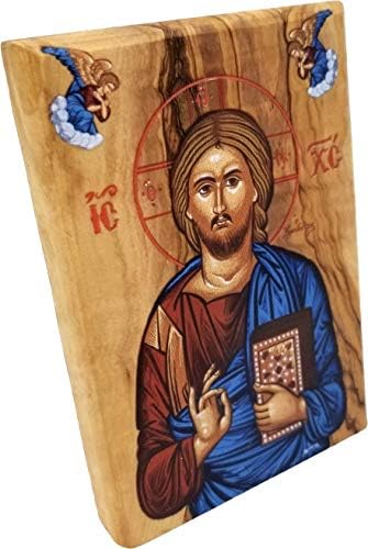 Holy Land Olive Wood Full Color Icon from Israel, Jesus King of The Universe, Handmade Wooden Standing Icon Plaque