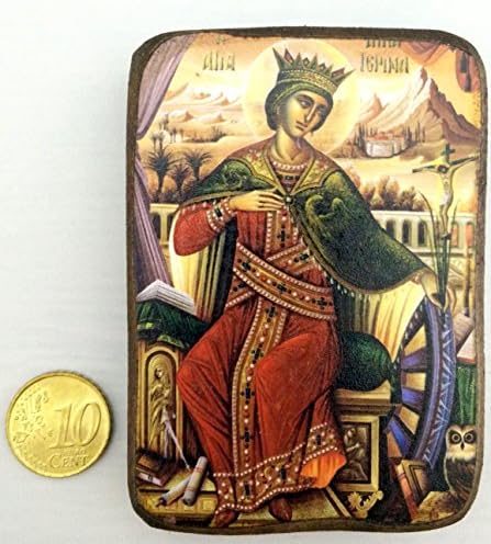 Wooden Greek Christian Orthodox Wood Icon of Saint Catherine / A0