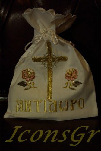 Antidoron Pouch Dimensions : 18 x 14 CM or 7.1×5.5 IN Cotton gold-embroidered case (Pouch) for storage or transport of holy bread.