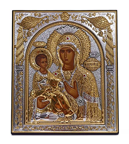 Virgin Mary Three-Handed Silver Orthodox Icon/Greek/Handmade