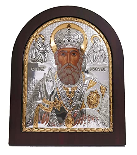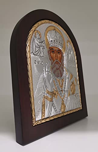 Saint Nicholas Byzantine Silver Orthodox Icon/Greek/Handmade
