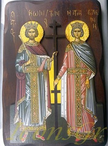 Wooden Greek Orthodox Icon of Saint Constantine & Helen WIDTH: 31 CM OR 12.2 IN LENGTH: 21 CM OR 8.26 IN Our icons are made of the highest quality silkscreen on specially treated wood with advanced aging techniques and other quality materials that ensure the waterproofing and protection from solar radiation. All the icons are unique and original, in high quality made by hand after your order.