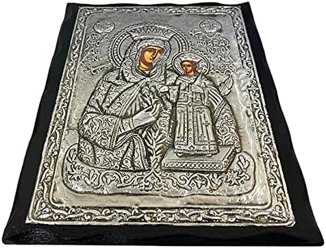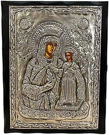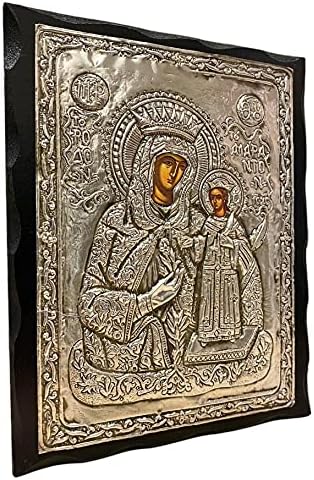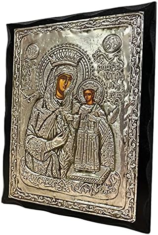 Metallic and Wooden Greek Orthodox icon of VIRGIN MARY OF ROSES , Length:24CM or 9.4 IN Width:19CM or 7.4 IN.The images are created in the laboratory are copies of Byzantine icons in aged style in colors and wood. In the final step of generating the image, is coated with a special varnish and beeswax for durability, and aromatic oil (myrrh) . All the icons are unique and original, in high quality made by hand. All images are guaranteed for life while at the rear there is a certificate.