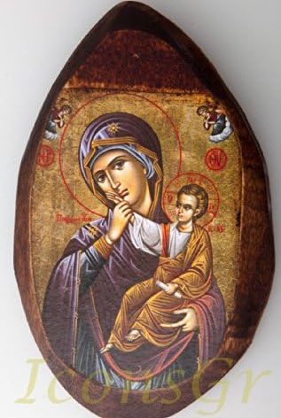 Wooden Greek Orthodox Icon of Mother Of Jesus & Jesus Christ WIDTH: 8 CM OR 3.1 IN LENGTH: 14 CM OR 5.5 IN Our icons are made of the highest quality silkscreen on specially treated wood with advanced aging techniques and other quality materials that ensure the waterproofing and protection from solar radiation. All the icons are unique and original, in high quality made by hand after your order.