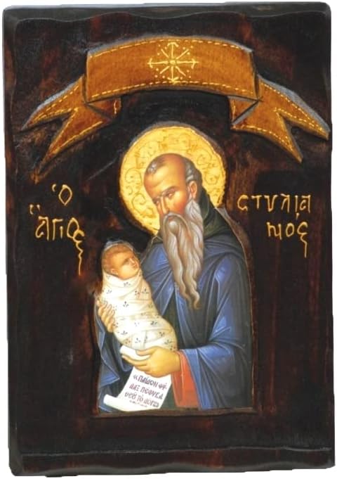 At the hour of his death, the face of St Stylianus suddenly became radiant, and an angel appeared to receive his soul. Known as a protector of children, St Stylianus is depicted in iconography holding an infant in his arms. Pious Christians ask him to help and protect their children, and childless women entreat his intercession so that they might have children.
