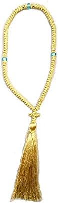 Handmade Blessed Christian Orthodox Greek Komboskoini Prayer Rope 100 Knots Pentant Gold