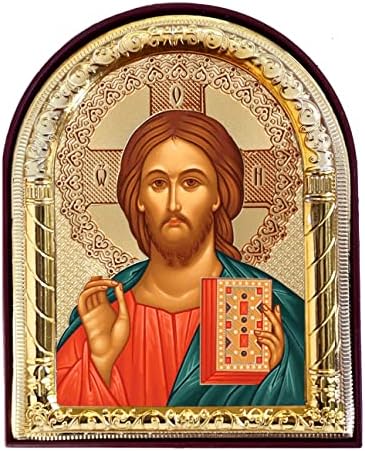 Christ The Teacher Icon Gold Foil Icon, Religious Gift, Arched Icon With Stand and Wall Hanging 4 1/16 Inch, Jesus Christ Image