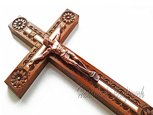 Author’s HandMade Carved Catholic Wooden Wall Cross Crucifix with * JESUS CHRIST * #12-5