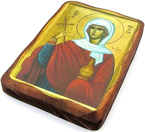 Handmade Wooden Greek Orthodox Icon of Saint Anastasia
