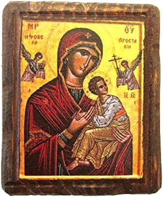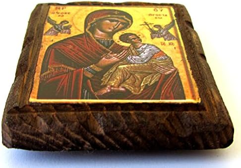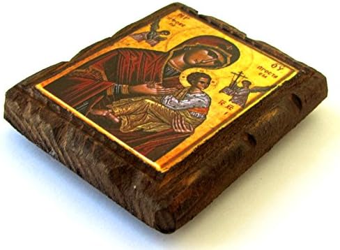 Handmade Wooden Greek Orthodox Icon of Virgin Mary with a Magnet