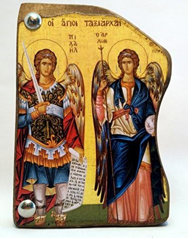 Wooden Greek Orthodox Icon Of Archangels Michael And Gabriel WIDTH: 6 CM OR 2.4 IN LENGTH: 12 CM OR 4.7 IN Our icons are made of the highest quality silkscreen on specially treated wood with advanced aging techniques and other quality materials that ensure the waterproofing and protection from solar radiation. All the icons are unique and original, in high quality made by hand after your order.