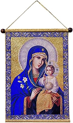 Needzo Tapestry Virgin Mary Icon Eternal Bloom Madonna and Child Wall Art Tapestry Icon 14 Inch, Catholic Orthodox Christian Image Religious Decoration Gift