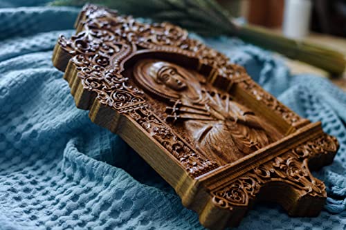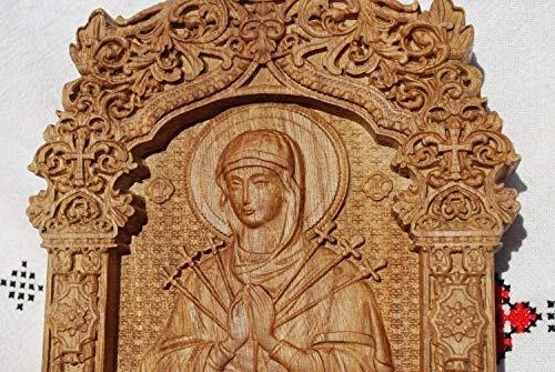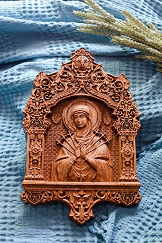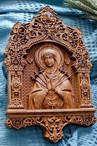 Seven Sorrows of Our Lady Orthodox Wood Carved Religious Virgin Mary Icon Christian Gifts Wedding Anniversary gifts housewarming gifts Wall Hanging Art Work