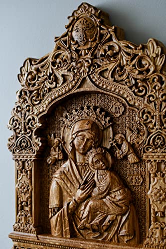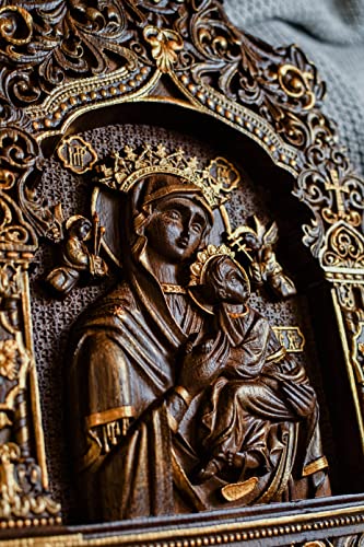 Our Lady of Perpetual Help Orthodox Wood Carved Religious Virgin Mary Icon Christian Gifts Wedding Anniversary gifts housewarming gifts Wall Hanging Art Work