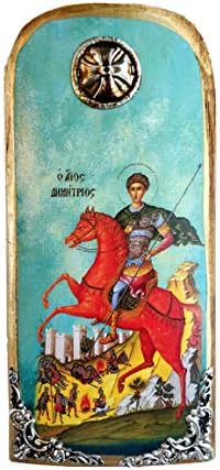 Hand Carved Wooden Greek Orthodox Icon of Saint Dimitrios