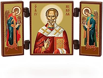 NKlaus – Saint Nicholas – Christian icon Triptych – Nikolaj Chudotvorec – travel altar wood