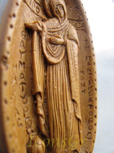 HANDMADE CARVED AROMATIC ICON BLESSED FROM MOUNT ATHOS OF VIRGIN MARY GERONTISSA WIDTH: 5 CM OR 2 IN LENGTH: 7 CM OR 2.8 IN Description: This is a handcrafted icon of Virgin Mary the Gerontissa made solely from three 100% natural ingredients. Pure bees wax and incense from Mount Athos and mastic from Chios Island. It is carved by hand and emits a distinct aroma of its ingredients, which takes you to a monastic atmosphere. This should only to be placed away from sunlight and extreme heat over 50 oC