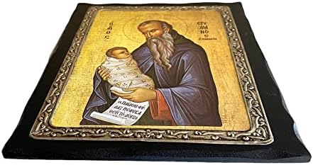Metallic and Wooden Greek Orthodox icon of Saint Stylianos Length:24CM or 9.4 IN Width:19CM or 7.4 IN.The images are created in the laboratory are copies of Byzantine icons in aged style in colors and wood. In the final step of generating the image, is coated with a special varnish and beeswax for durability, and aromatic oil (myrrh) . All the icons are unique and original, in high quality made by hand. All images are guaranteed for life while at the rear there is a certificate.