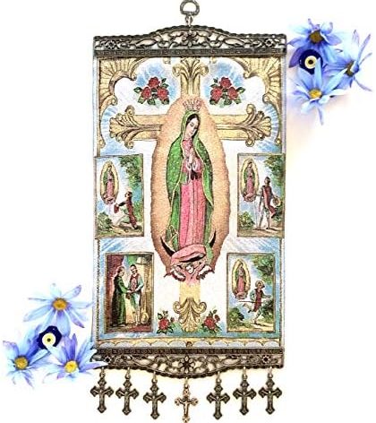 ✮✮✮ Religious Icon, Holy Saint Mary Blessed Virgin, Our Lady of Guadalupe, Woven Tapestry Icon With Metal Crosses Featuring Jesus Christ, Perfect Home Decor for Entire House or Office Spaces.