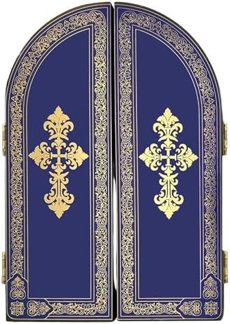 Resurrection of Christ Easter Orthodox Icon Triptych – This exquisite triptych is a finely crafted piece of religious home decor that beautifully portrays the Resurrection of Christ, flanked by the presence of Saint Seraphim Angels. It stands 4 inches tall and is 2 5/8 inches wide when closed, revealing a harmonious symphony of imagery when unfolded to its full width of 5 1/2 inches. The gold icons that grace this triptych are meticulously mounted on wood. The triptych form, with its threefold division, serves as a symbol of the Holy Trinity and adds depth and context to the divine scene depicted. The compact size of this religious artifact makes it an ideal addition to any space. It is a truly lovely piece that not only embodies deep religious significance but also possesses an ornamental quality. Religious gifts