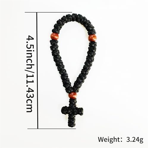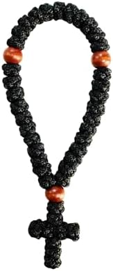 Bovemee 1Pc Handmade Christian 33 knot Orthodox Greek Omboskoini Prayer Rope Protection Blessing Cross Charm Tassel Car Hanging Charm Christmas gift (Black)