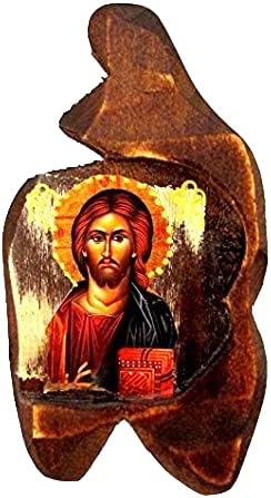 Handmade Wooden Greek Christian Orthodox Wood Icon of Jesus Christ / SF00