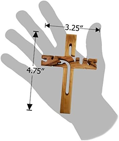 Logos Trading Post Holy Land Olive Wood Jesus Cut Out Hanging Wall Cross from Israel, Small, Hand Carved Olive Wood from Jerusalem, 4.75″