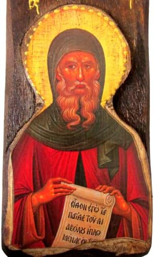 Wooden Greek Christian Orthodox Wood Icon of Saint Antonios Antony / N8