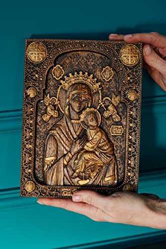 Blessed Our Lady of Perpetual Help Wood Carved Religious Virgin Mary Icon Christian Gifts Wedding Anniversary gifts housewarming gifts Wall Hanging Art Work