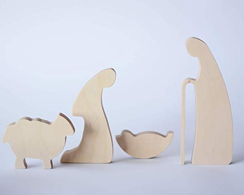 4-PIECE wood nativity set. It is crafted of plywood, with satin smooth finish and rounded edges.