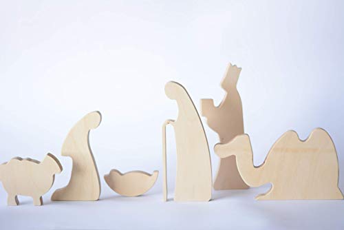 6-PIECE wood nativity set. It is crafted of plywood, with satin smooth finish and rounded edges.