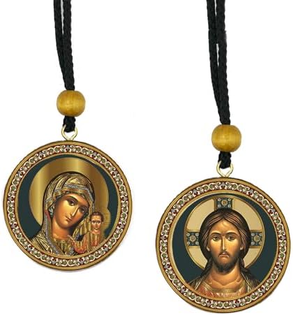 Reversible Icon Car Room Pendant Christ The Teacher and Virgin Mary Madonna Virgin of Kazan 2 Inch, Religious Gift for Woman, Men