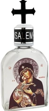 Glass bottle with plastic cross top – Glass Holy Water Bottle with Orthodox Byzantine Russian Icon Of Virgin Of Vladimir