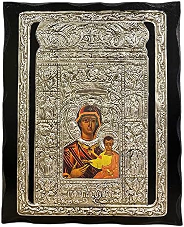 Handmade Greek Christian Orthodox Wood-Metallic icon of Virgin Mary Soumela (24 X 19cm or 9.4 X 7.5 in) Solid Wood