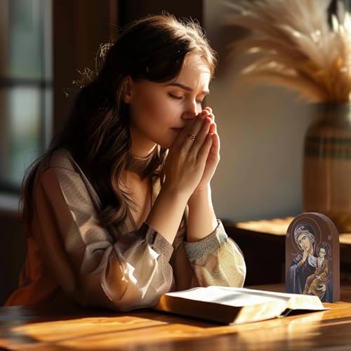 Home Decoration: Hinged for easy display, these Virgin Mary icons are perfect for placing on your desk, nightstand, or in your library. Ideal for both travel and home decor.