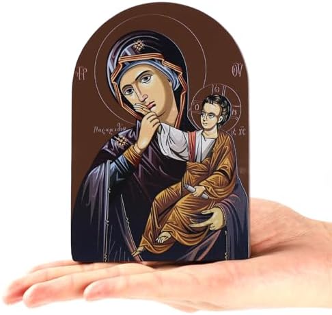 Handmade Wood Greek Christian Orthodox Icons of Virgin Mary,Orthodox Christian Catholic Icons for Orthodox Christmas Day Gift (5.1 X 3.5 in)