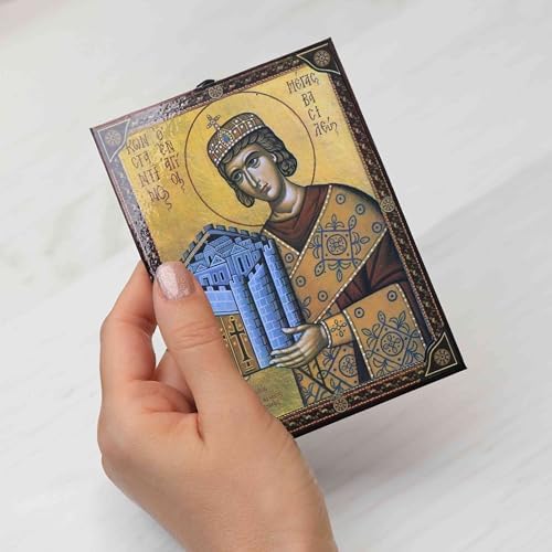 This wooden icon features a beautiful depiction of a Constantine Constantine in Byzantine style.