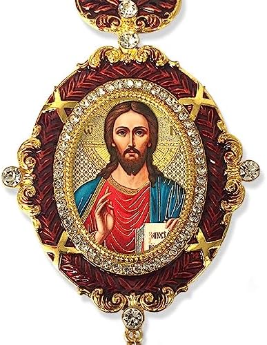 Icon of Jesus Christ The Teacher Russian Orthodox Catholic Icon Wall Hanging Gold Foil, Enamel Frame, Crown 5 3/4 Inch Religious wall room christmas tree ornament decoration – Gift boxed with the transparent top