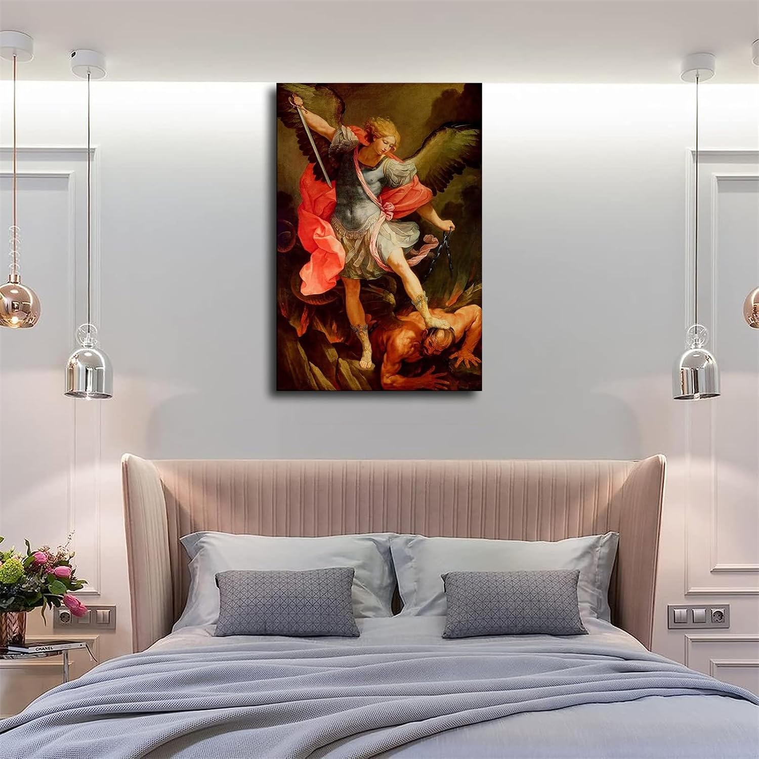 MATERIALS AND PRINTING: This Archangel Michael St Michael Defeated Satan Poster Judaism Christian Catholic Islam Orthodox poster is made of top brand quality canvas. Professional printing anti-fading technology and high-quality inks make the printed posters more colorful and three-dimensional, ensuring high-definition posters. All posters are carefully rolled and packaged, which will definitely satisfy you.