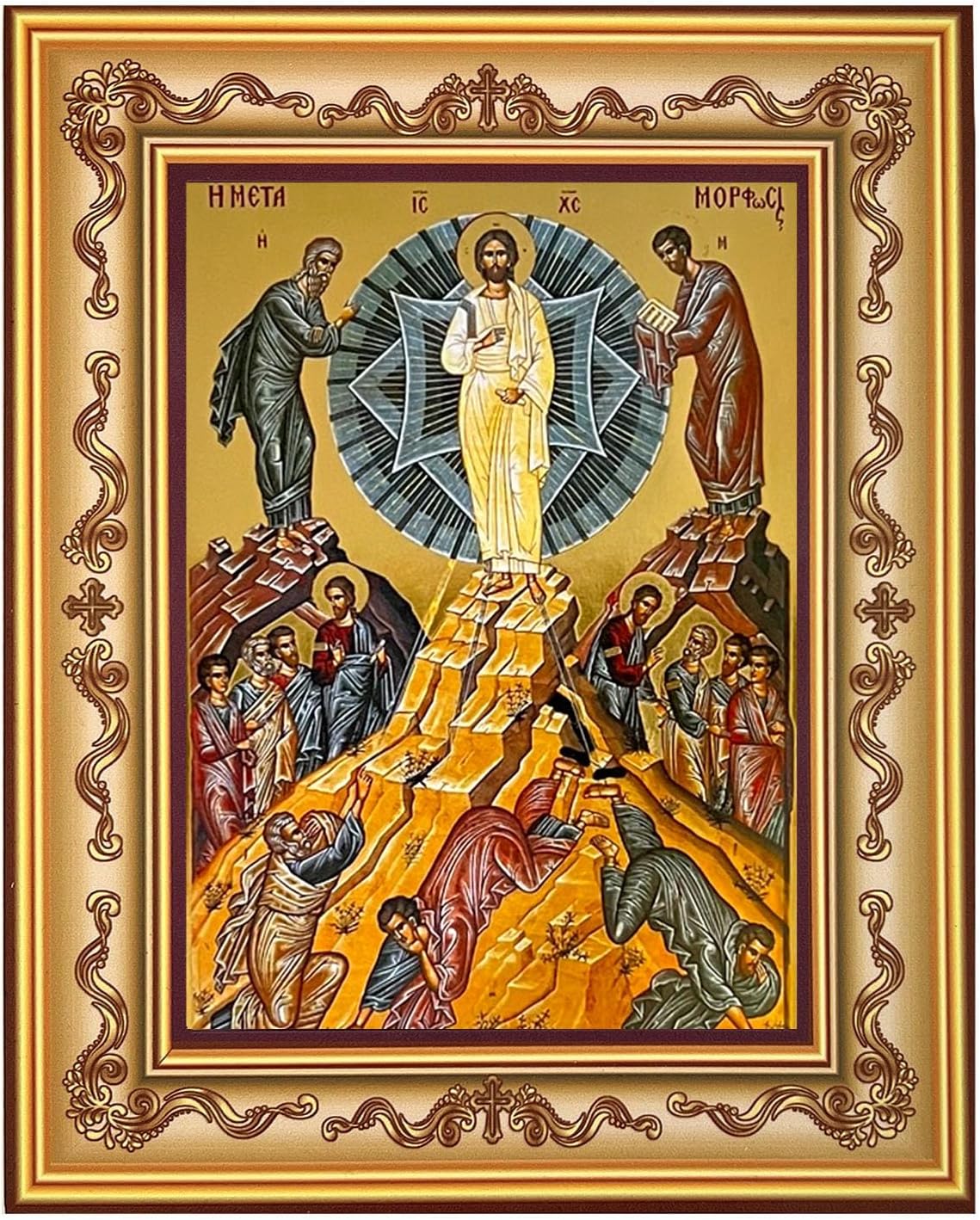 Jesus Christ Transfiguration Icon Authentic Greek Orthodox Byzantine Icon Gold Framed Gold Foil – Wall Hanging and Sanding 7 1/4 Inch, Religious Gift