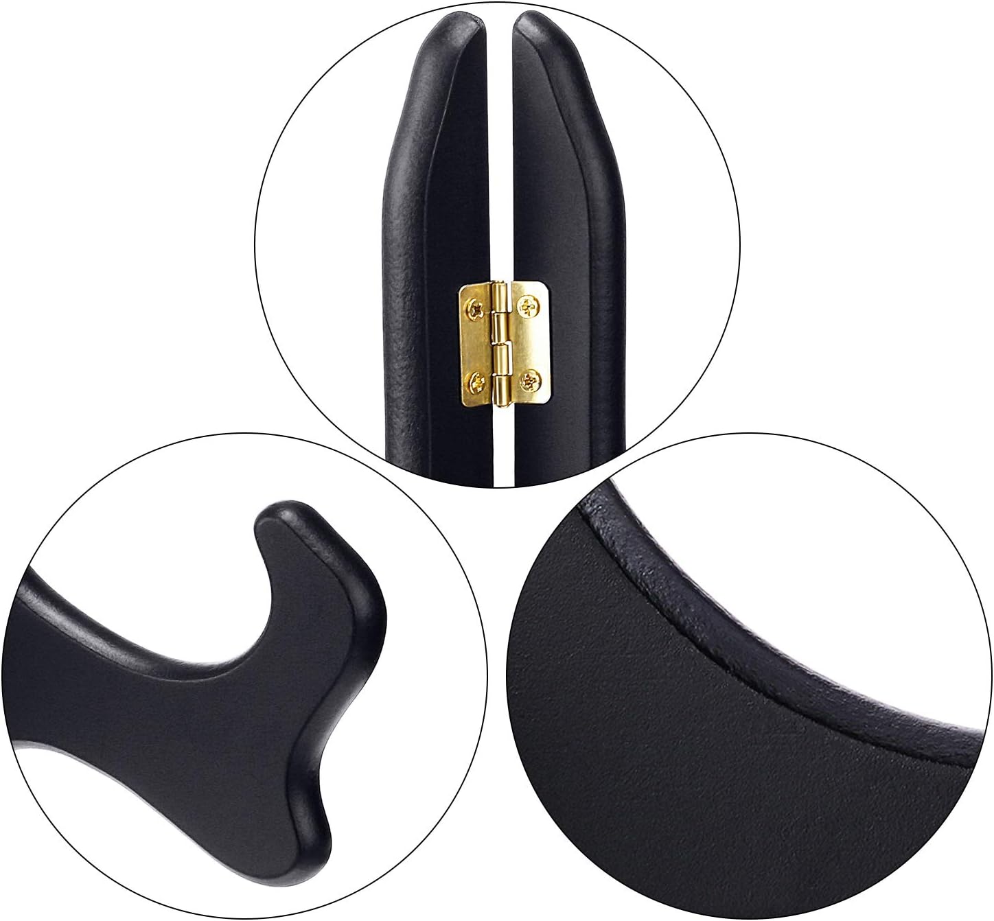 Solid material: the wooden display easel is made of excellent crafted wood, painted black with gold latch; Solid construction, stable and durable; Contoured edges and hinges to fold flat for easy to store