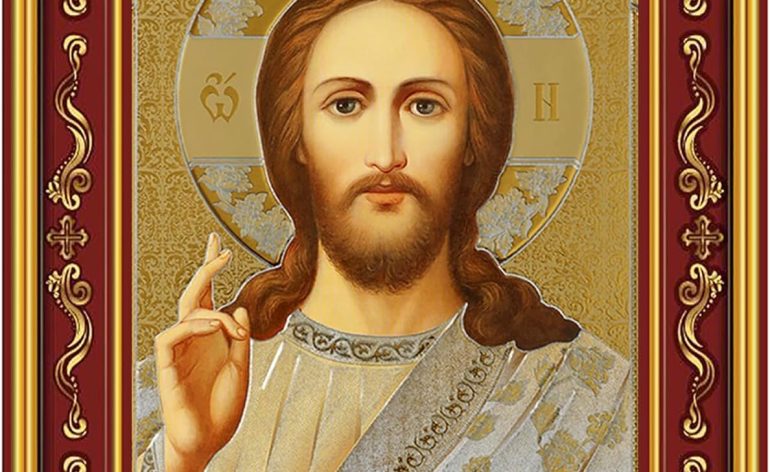 Christ The Teacher Icon – Orthodox Christian Catholic Icon, Gold Foil Icon Framed in a Beautiful Burgundry Color Wooden Frame Decorated With Crosses