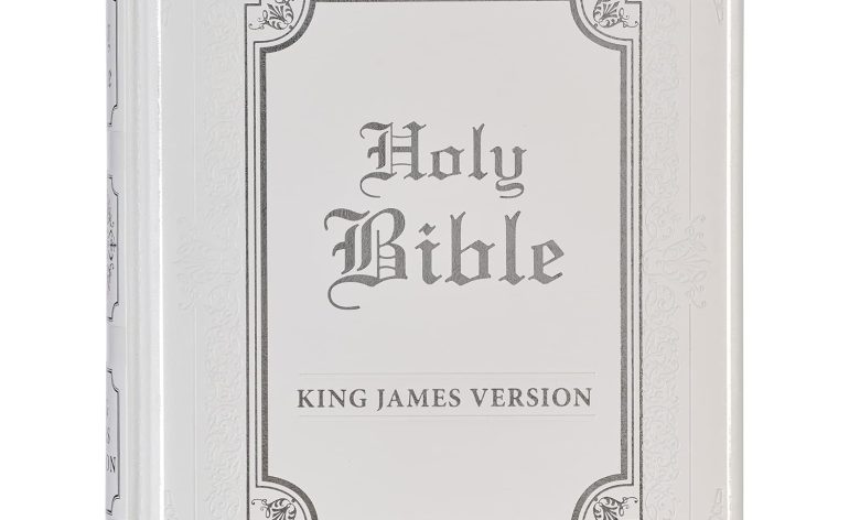 The exquisite White Faux Leather King James Version Family Bible is crafted to be a prized possession that can be handed down from generation to generation. Just like the beloved 1769 English text it is printed in, this Bible will become a familiar classic among your children and their children.